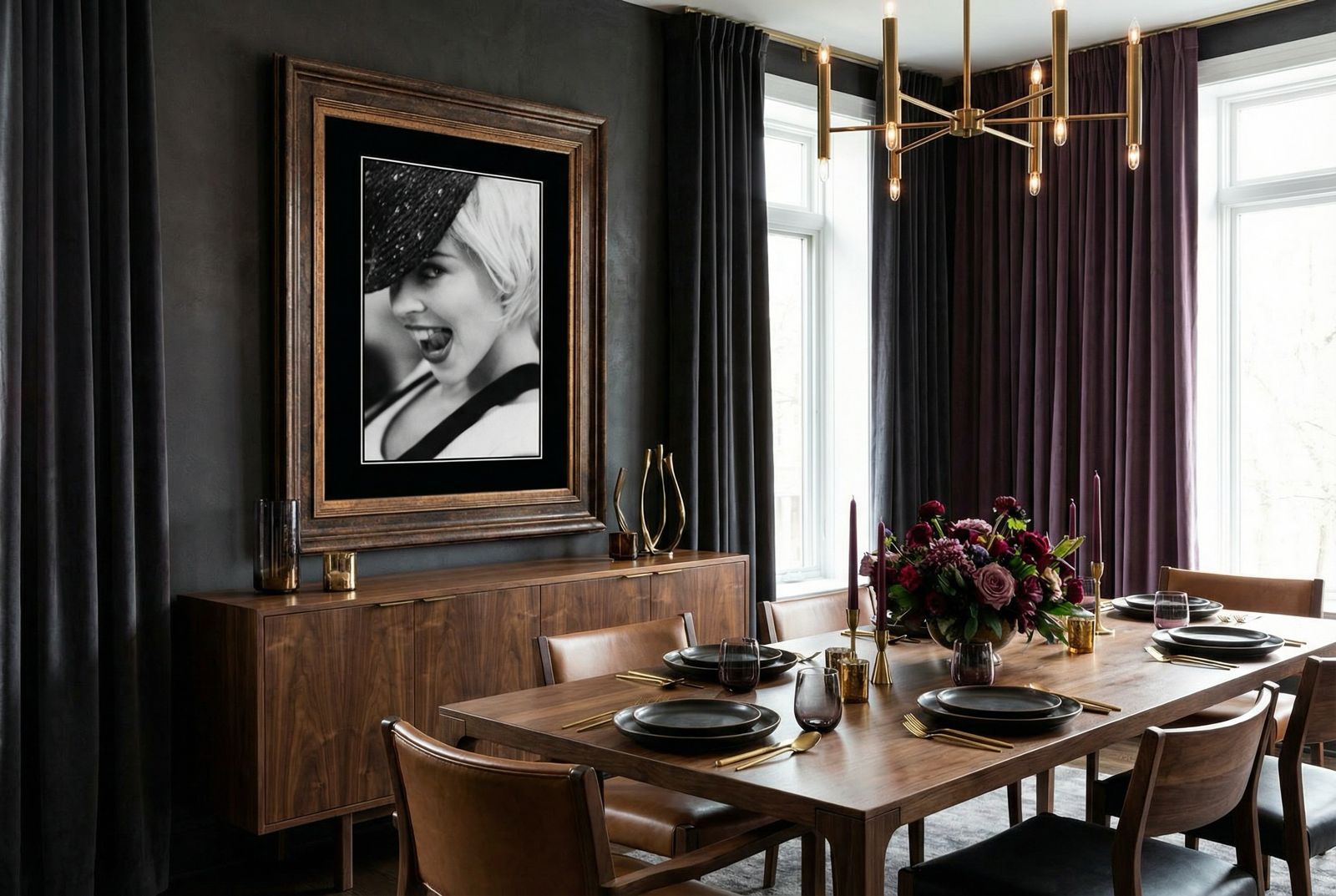 In the dining room, art is selected to complement shared meals, evening light, and changing table settings. The aim is to introduce rhythm and warmth without overpowering the rituals of hosting, gathering, and celebration.