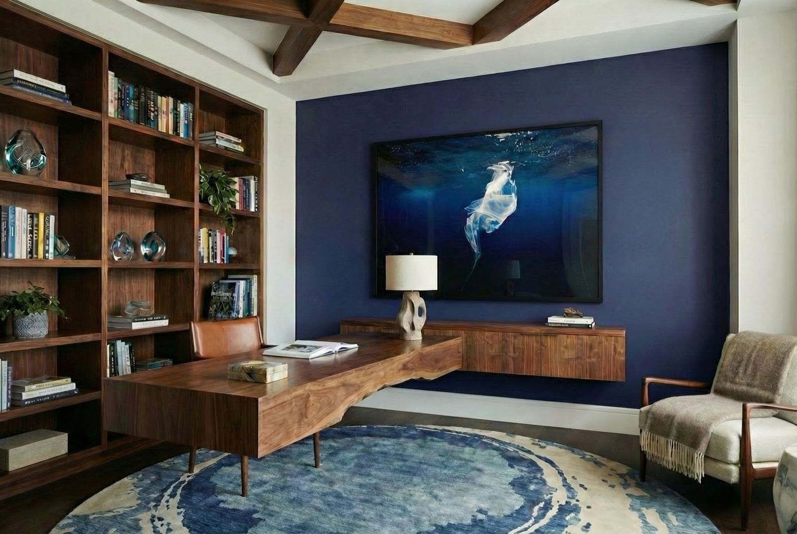 The living room edit focuses on pieces that become a natural focal point, anchoring sofas, fireplaces, or media walls. Works are chosen to feel welcoming from every angle, creating a space that invites conversation, rest, and slow looking