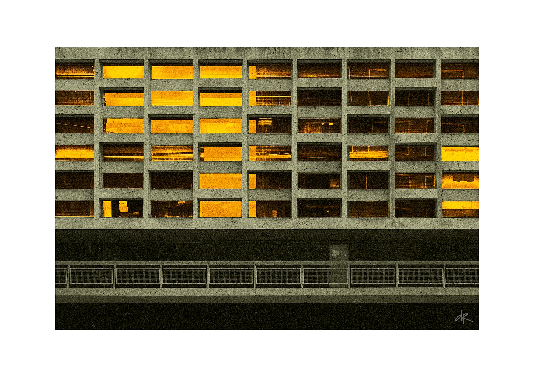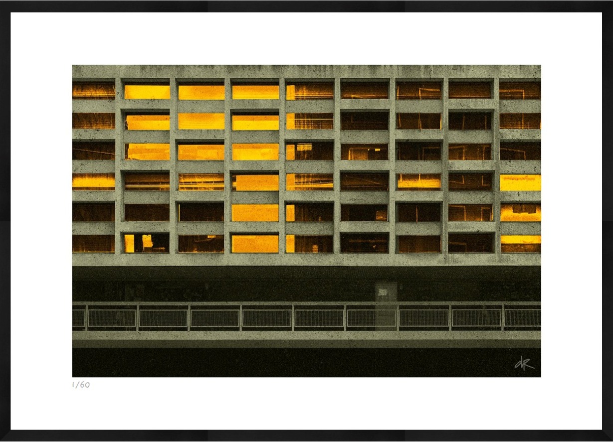 His work is a refined fusion of digital precision and human emotion. His images reveal the subconscious architecture of modern life, where nostalgia meets futurism, and decay is rendered with unexpected beauty. Beneath surfaces of glass, metal, and concrete, Rimmer uncovers a visual language that feels both intimate and architectural, designed not merely to be seen, but to be experienced within a space.