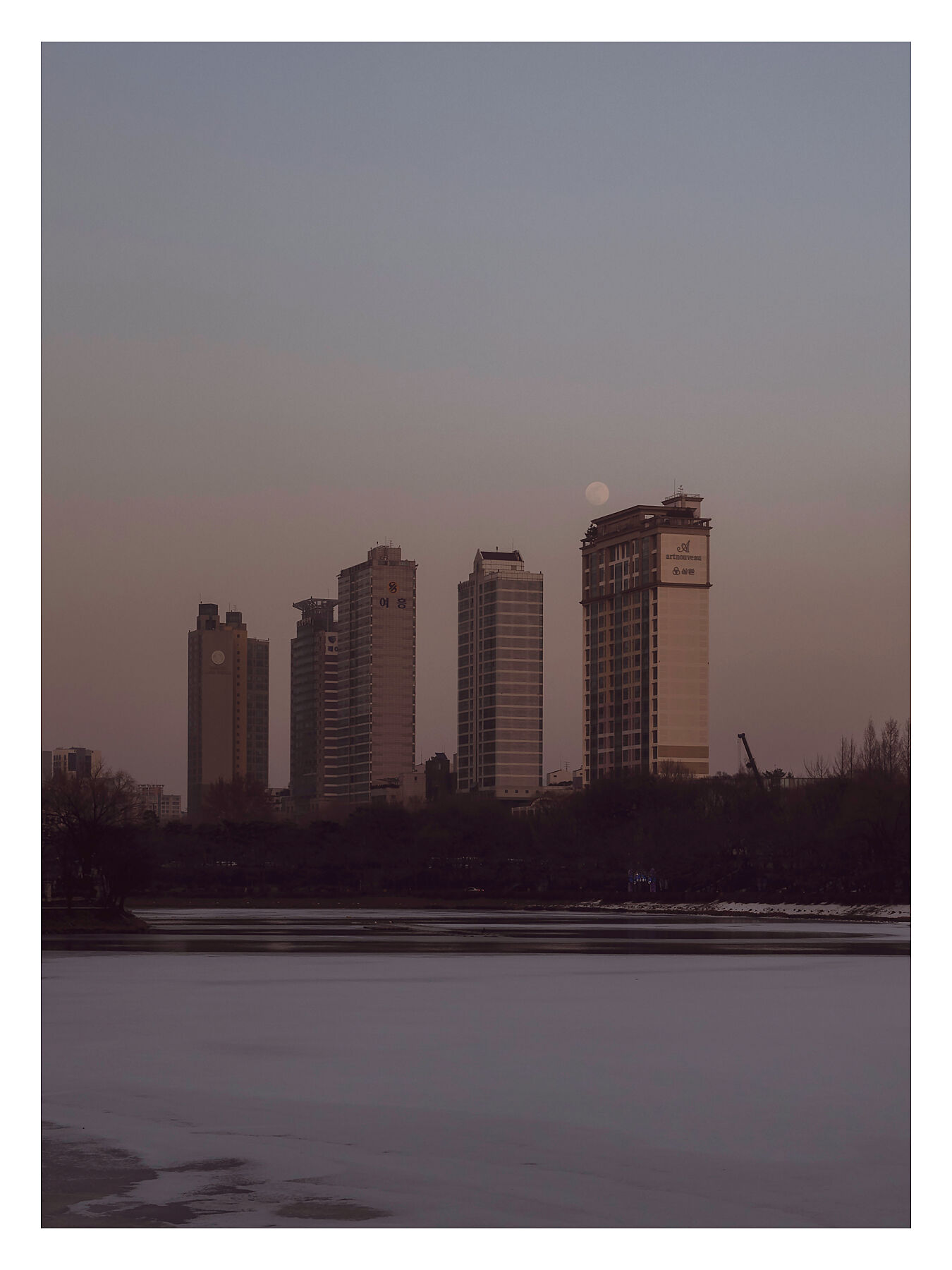 A Lunar Handover: As the sun fades into the horizon, the moon rises to stake its claim above a Seoul skyline of quiet giants.