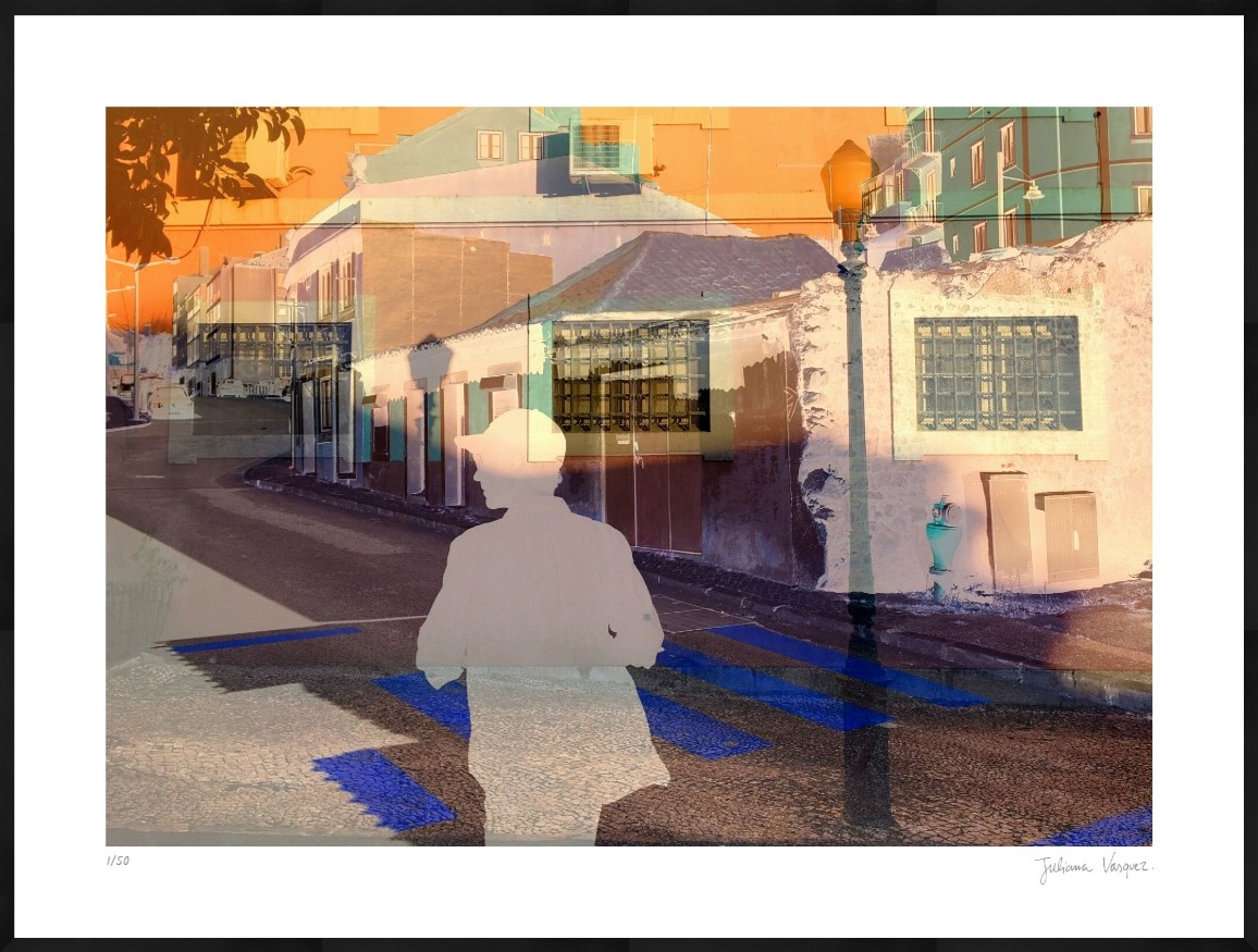The image was taken in Portugal in the summer of 2019, whilst Juliana was exploring the back streets of Belém, one of Lisbon’s prettiest neighbourhoods. The encounters of shadows and light, the charming architecture, the vivid colours, they all contributed to a kind of daydream experience. Fernando Pessoa once said, “Literature is the most agreeable way of ignoring life”. Combining everyday images is my way of inventing beauty yet nevertheless ignoring life too.