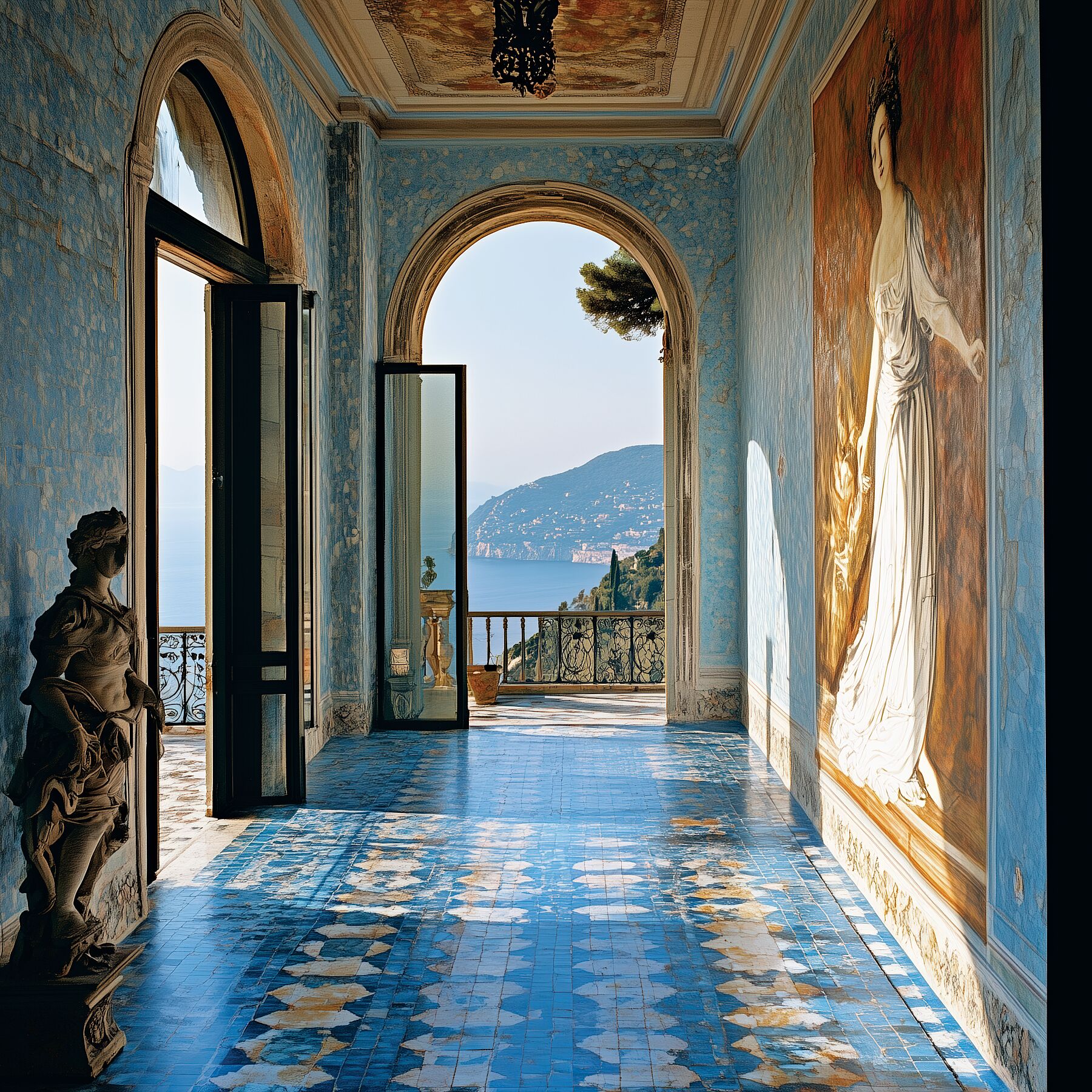 Soft marbles in creams, blush, and seafoam echo the luminous elegance of the Amalfi Coast, where light and texture evoke the serenity of Mediterranean interiors. Through photography, digital illustration, and collage, Tamara Bacchia transforms these refined surfaces into contemplative compositions of colour and atmosphere. Her works merge fragments of ancestral architecture with imagined restorations, composing spaces suspended between memory and reinvention.