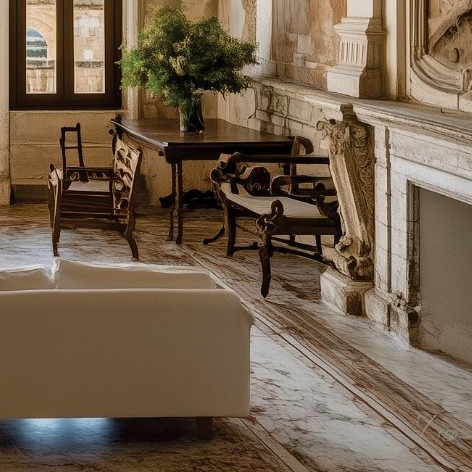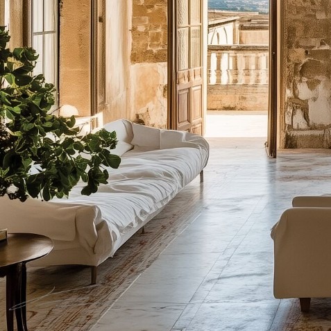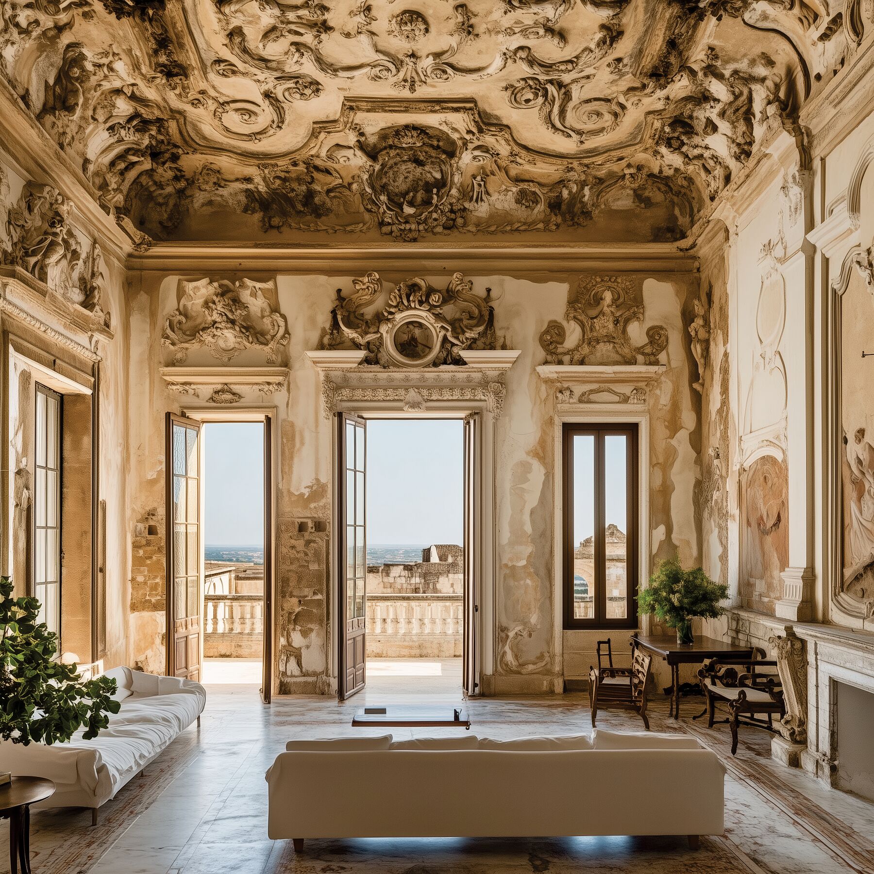 Bathed in golden Sicilian light, the Baroque town of Noto unfolds like a dream, its sun-warmed façades and elegant domes rising beneath a luminous sky. Through photography, digital illustration, and collage, Tamara Bacchia evokes the poetic nostalgia of southern Italy, transforming architectural fragments into meditative landscapes of memory. Her works merge fragments of ancestral architecture with imagined restorations, composing spaces suspended between memory and reinvention.