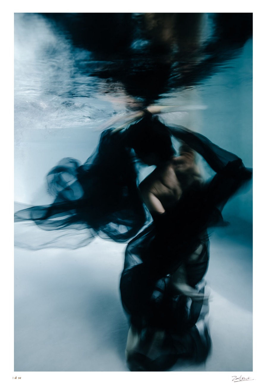 Capturing two worlds through her lens—the drama of the submerged physical form within a serene, floating underworld, her imagery evokes a mythical, otherworldly atmosphere while simultaneously drawing us toward consequence and the need for action.